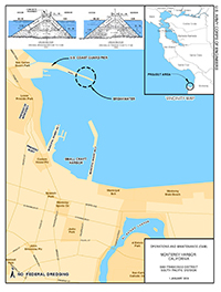 The project is located in Monterey Harbor, California, which is approximately 100 miles south of San Francisco. This project consists of a 1,700 foot long west breakwater and an 8–foot-deep Mean Lower Low Water (MLLW) basin near Municipal Wharf No. 1 (Fisherman's Wharf).